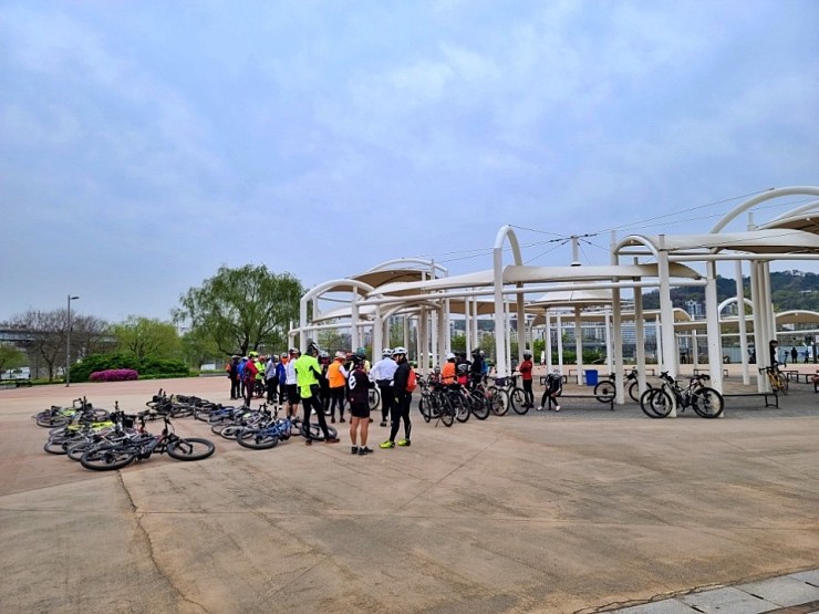 일요일 오전인데 광나루한강공원 자전거공원에는 자전거 동호인들이 단체 라이딩이라도 떠나시는지 수십 명이 집결해 있는 것을 보았습니다. 자전거길에서도 정말 많은 자전거 일행을 만날 수 있었지요. 호미는 평소에도 주말이나 휴일에는 자전거를 가능한 타지 않는 편이에요. 워낙 복잡해서이기도 합니다. 요즘 한강 자전거길에서는 킥보드를 비롯해서 전동휠도 만날 수 있으니 더욱 조심해야 합니다.