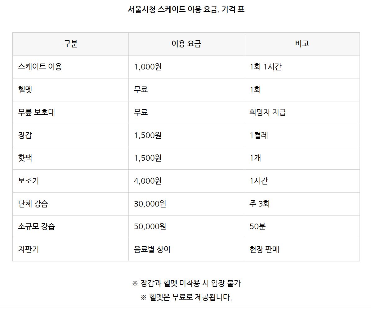 서울시청 스케이트 가격 요금 1,000원