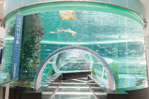 대형 수족관 아래를 걷는 순간 마음까지 차분해집니다.